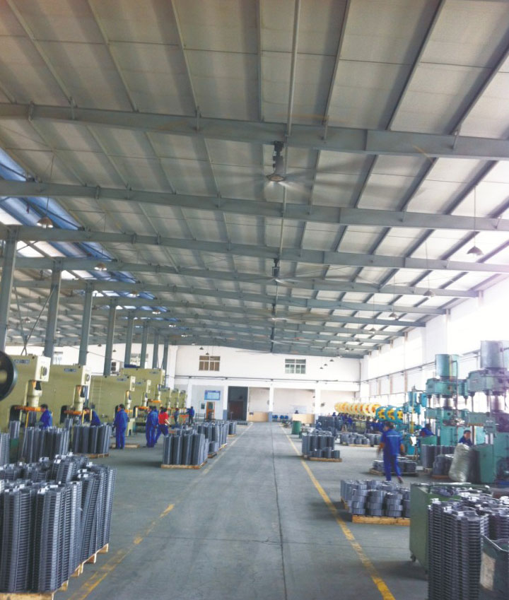 我公司生產(chǎn)的大型工業(yè)吊扇直接懸掛在廠房屋梁下,風(fēng)力柔和,能加快車間空氣流通,有效降低車間內(nèi)溫度,改善車間空氣環(huán)境質(zhì)量,有利于員工的身體健康。
